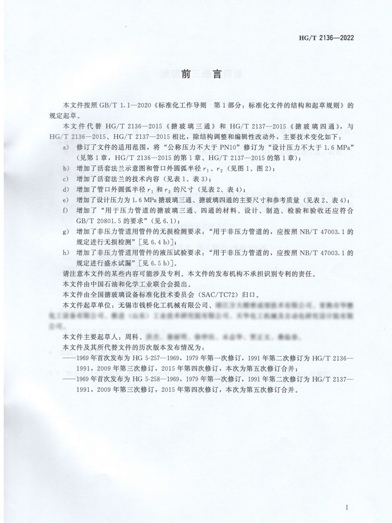 中華人民共和國化工行業(yè)標(biāo)準(zhǔn)HG/T 2136-2022搪玻璃三通四通 點擊下載搪玻璃三通四通行業(yè)標(biāo)準(zhǔn)