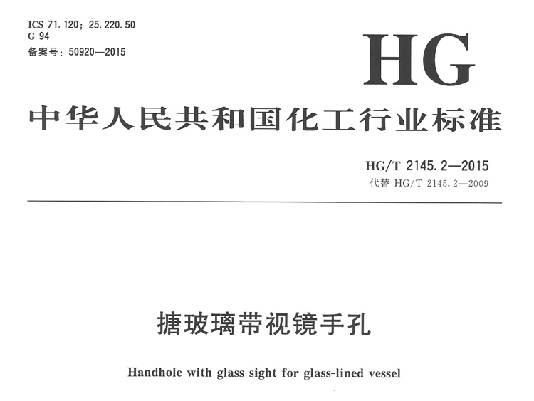 中華人民共和國化工行業(yè)標(biāo)準(zhǔn)之HG/T 2145.2-2015搪玻璃帶視鏡手孔,無錫市錢橋化工機(jī)械有限公司為本標(biāo)準(zhǔn)起草單位之一。 ... ...