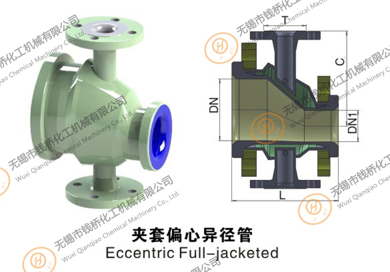 錢橋化工機械生產的搪瓷夾套異徑管分為搪瓷夾套偏心異徑管和搪瓷夾套同心異徑管: